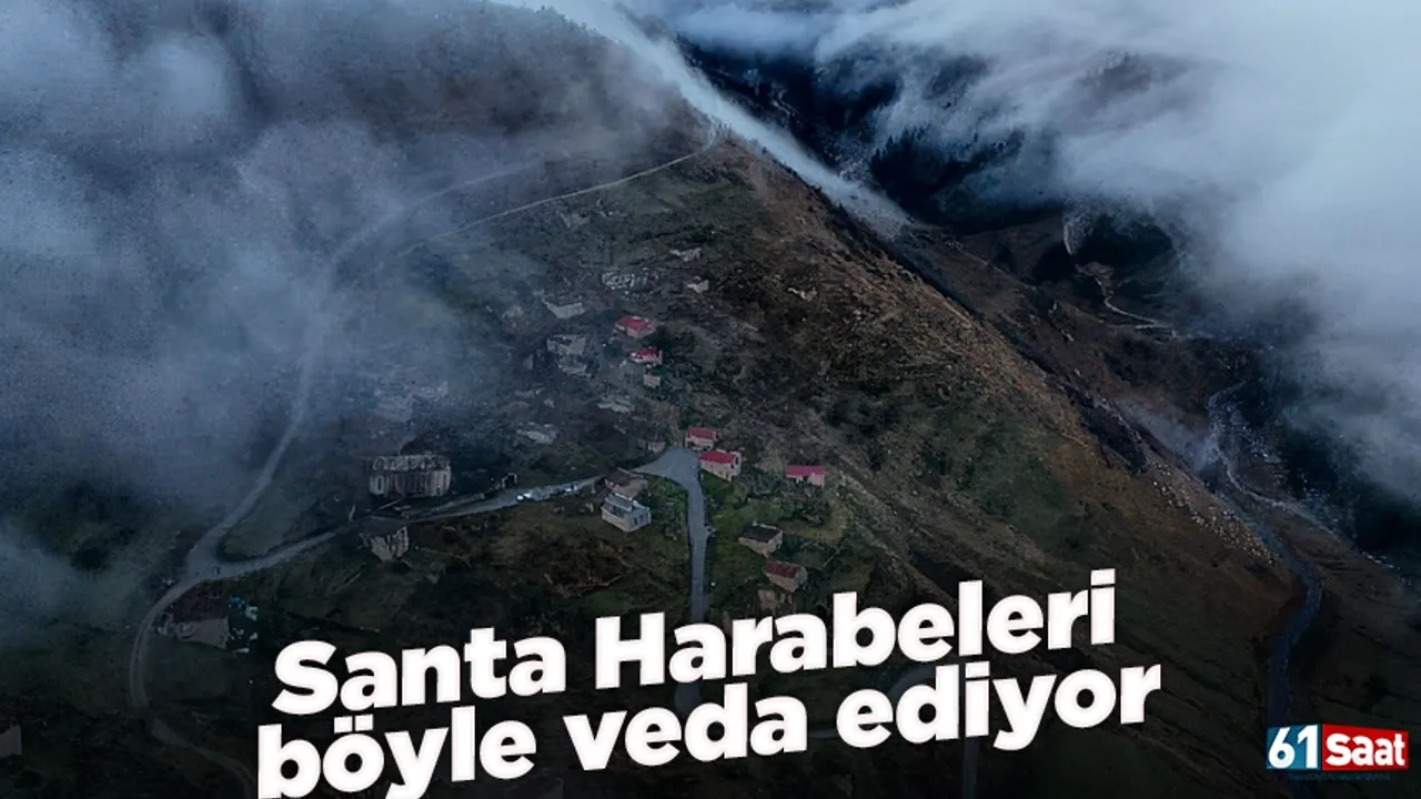 GÜMÜŞHANE'de yer alan, 17'nci yüzyılda Rum madenciler tarafından kurulduğu bilinip, tek katlı yapılar ve kiliselerden oluşan Santa Harabeleri sonbahara, tabiatının sis ve bulutları arasında renk cümbüşüyle veda ediyor.