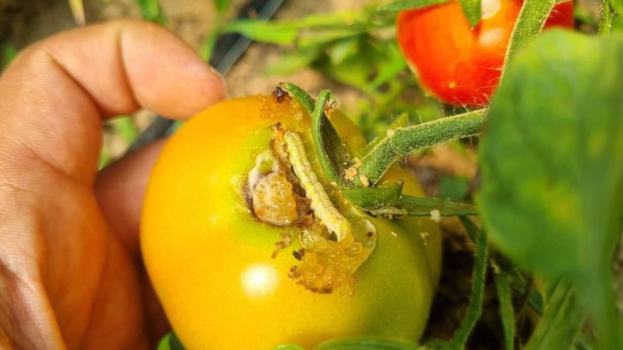 Özellikle domateslere zarar veren ve meyvelerde çürüklüğe neden olan Yeşil Kurt zararlısıyla ilgi personellerce üreticilere etkin mücadele yöntemleri hakkında bilgiler verildi.