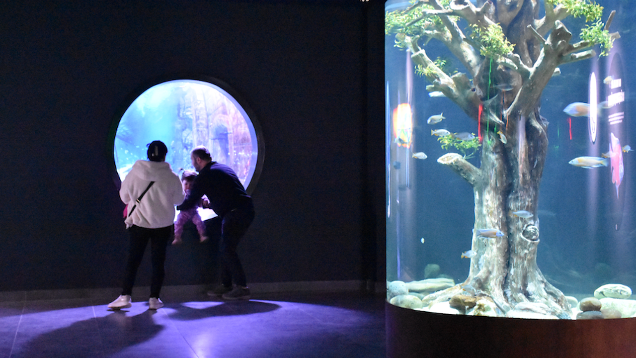Akvaryumda, Mersin balığı, deniz aslanı, koi, vatoz, müren ve köpek balığının da aralarında bulunduğu tropik, Ege ve Akdeniz ile tatlı-acı su türleri ziyaretçilere tanıtılıyor.