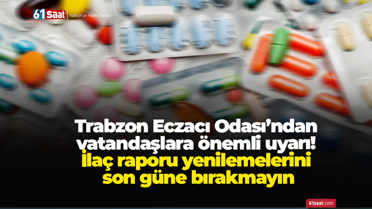Trabzon Eczacı Odası, tüm vatandaşlara tedavi sürekliliği açısından rapor yenileme işlemlerini zamanında tamamlamaları çağrısında bulundu.