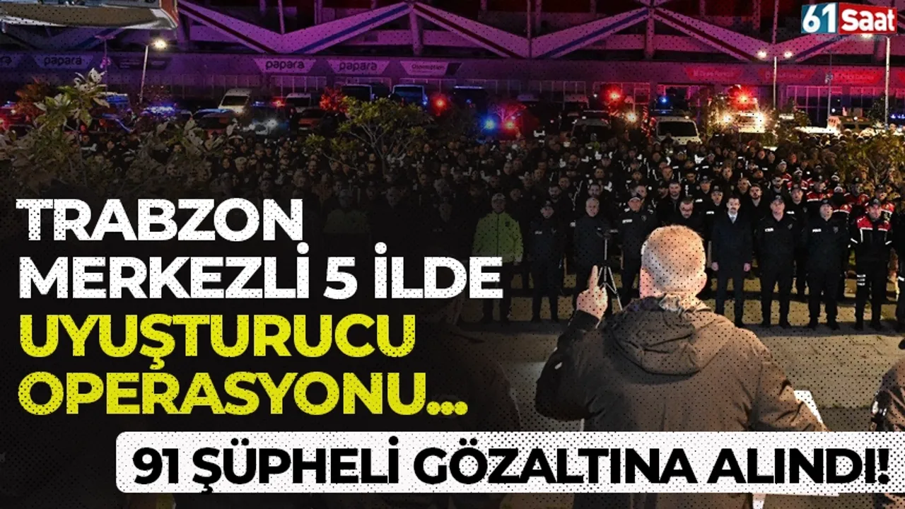 Trabzon merkezli 5 ilde bin 50 personelin katıldığı operasyonda kilolarca uyuşturucu madde ele geçirilirken, 101 adrese yapılan baskınlarda 91 şüpheli gözaltına alındı.