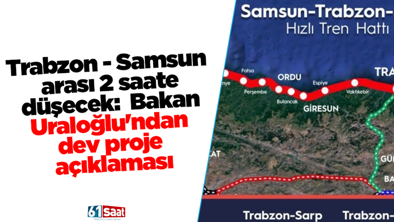Bakan Uraloğlu, yaptığı açıklamada, “Samsun-Trabzon-Sarp hızlı tren demiryolu projemizle Trabzon ile Samsun arasındaki mesafeyi 2 saate indireceğiz. Bu proje, bölgemizin ulaşım altyapısını önemli ölçüde dönüştürecek ve tüm Karadeniz illerini birbirine bağlayacak. Sayın Cumhurbaşkanımızın vizyonu ve kararlılığıyla hayata geçireceğiz” dedi.