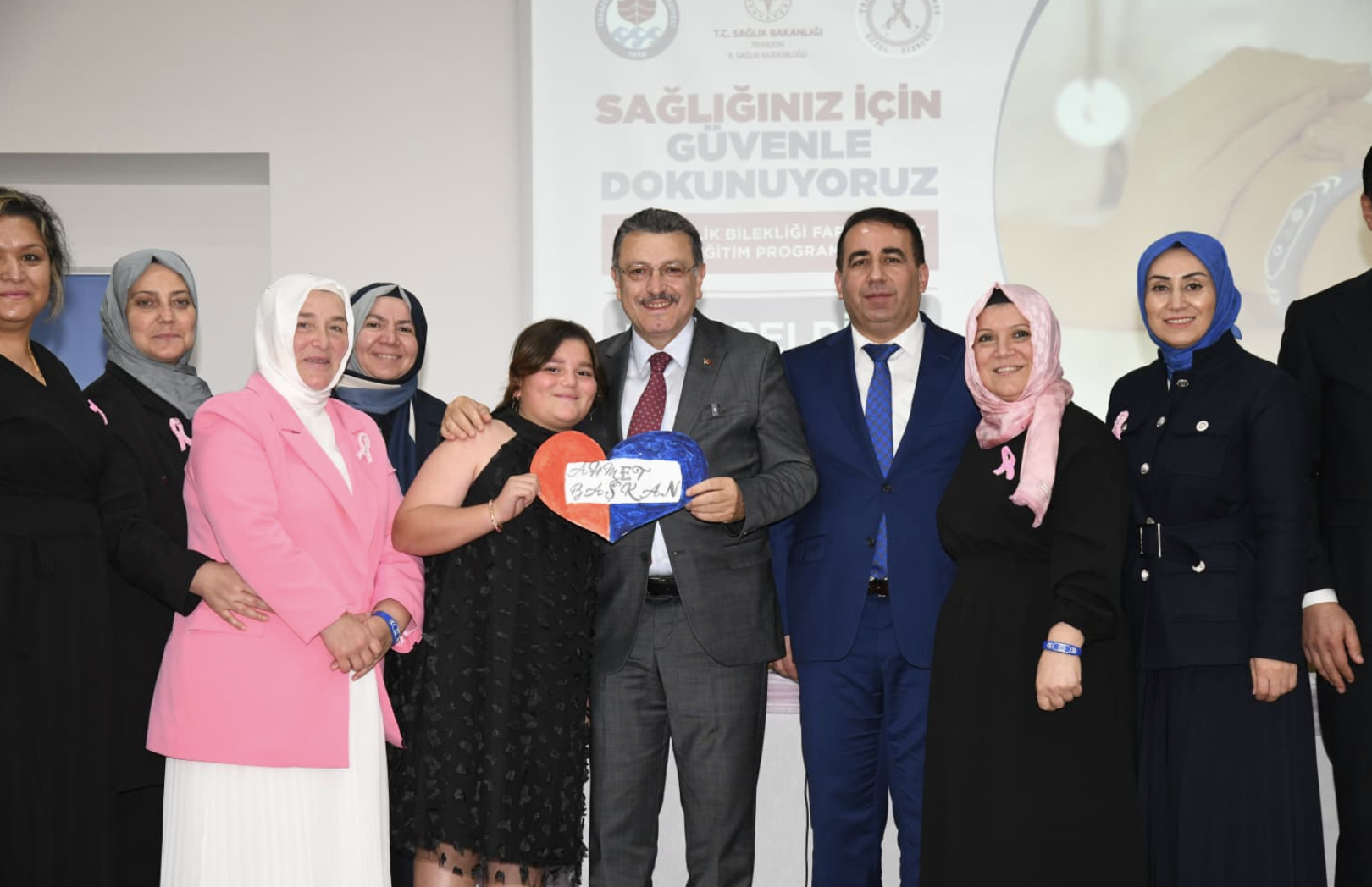 Trabzon Büyükşehir Belediye Başkanı Ahmet Metin Genç, Kadın Yaşam ve İstihdam Merkezi’nde “Sağlığınız İçin Güvenle Dokunuyoruz” mottosu ile düzenlenen Tıbbi Kimlik Bilekliği Farkındalık Eğitimi Programı’na katıldı. Programa ayrıca; Trabzon Vali Yardımcısı Ercan Öter, AK Parti Ortahisar İlçe Başkanı Seyit Hisoğlu, İl Kadın Kolları Başkanı Ayfer Cihan, İl Sağlık Müdürlüğü Destek Hizmetleri Başkanı Dr. Erdem Şen, Büyükşehir Belediyesi Kadın Yaşam ve İstihdam Merkezi Daire Başkanı Esengül Kibar, Yaşamak Güzel Derneği Başkanı Yasemin Bozdağ, akademisyenler, ilçe belediye başkanları ve çok sayıda davetli katıldı.