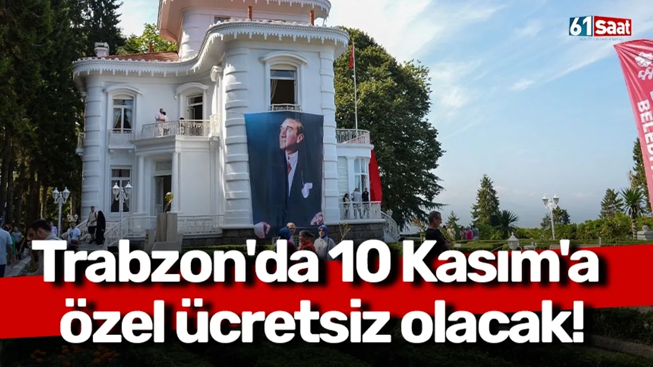 Trabzon Büyükşehir Belediyesi, Büyük Önder Gazi Mustafa Kemal Atatürk'ün vefatının 87. yıl dönümü dolayısıyla Atatürk Köşkü’nün ücretsiz ziyaret edilebileceğini duyurdu.