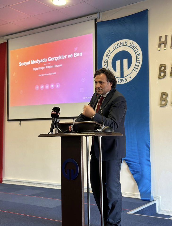 Araklı Ali Cevat Özyurt MYO’nun kısa tanıtımının ardından söz alan Ali Cevat Özyurt MYO Müdürü Prof.Dr. Özcan Özyurt Sosyal Medyanın kullanımı ve insan hayatına katkıları konusunda öğrenci ve davetlileri bilgilendiren bir sunum yaptı.