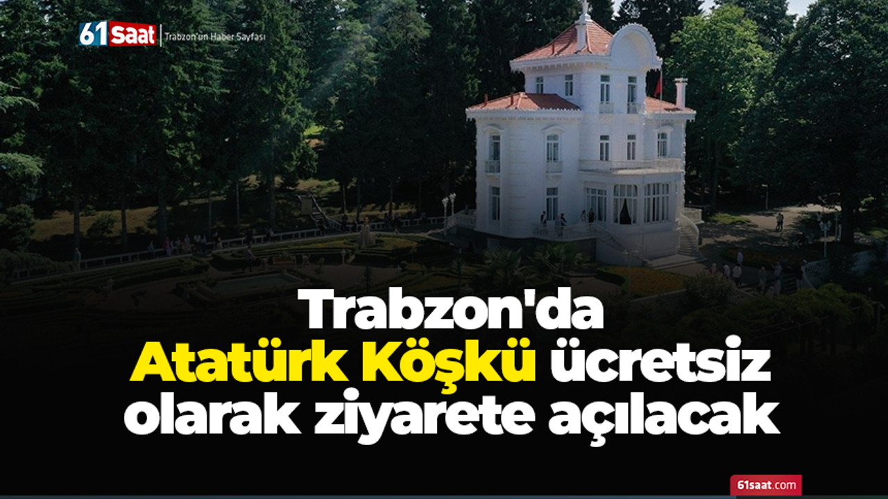 Büyükşehir Belediyesi’nden yapılan açıklamada şu ifadelere yer verildi: “Türkiye Cumhuriyeti’nin kurucusu Büyük Önder Gazi Mustafa Kemal Atatürk’ün Trabzon’da üç kez konakladığı Atatürk Köşkü’nü, 29 Ekim Cumhuriyet Bayramı dolayısıyla tüm vatandaşlarımız ücretsiz olarak ziyaret edebilecek. Tüm misafirlerimize keyifli bir gezi diliyor, Cumhuriyetimizin 102. yılını gurur ve coşkuyla kutluyoruz.”