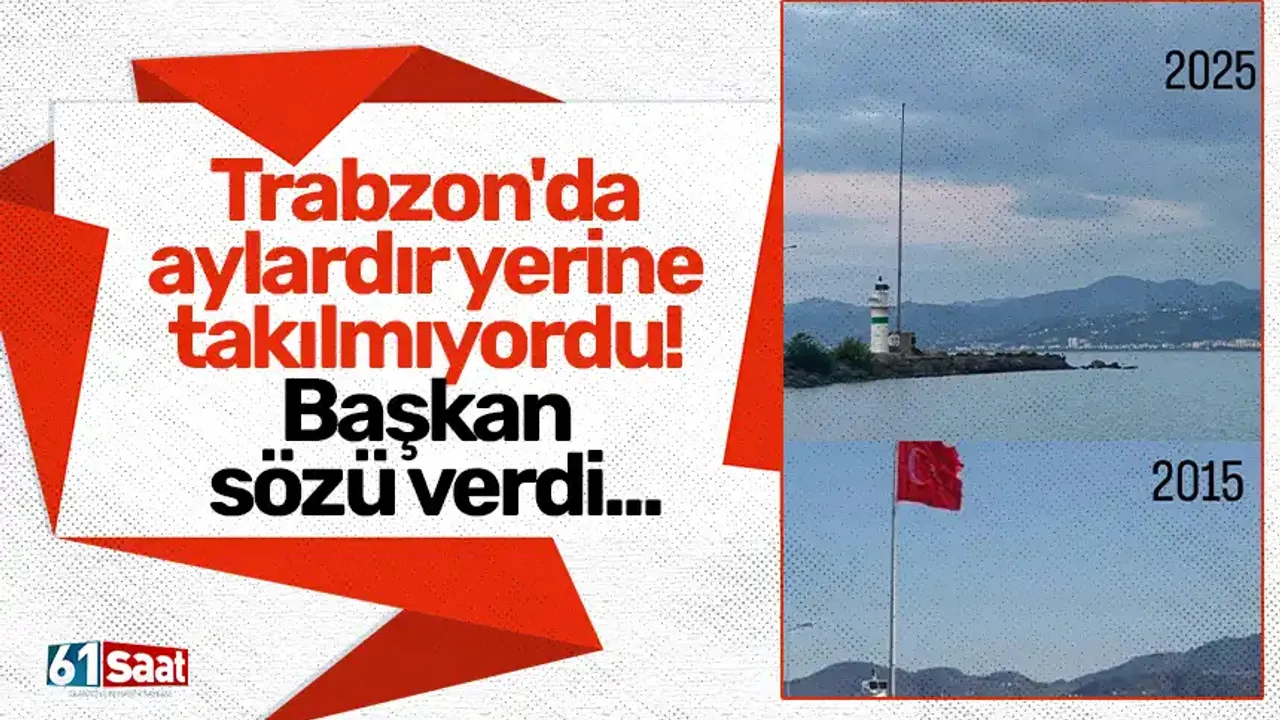 Trabzon’un Beşikdüzü ilçesinde sahilde deniz fenerinin yanında bulunan Türk bayrağının aylardır yerine takılmayışı dikkat çekti.