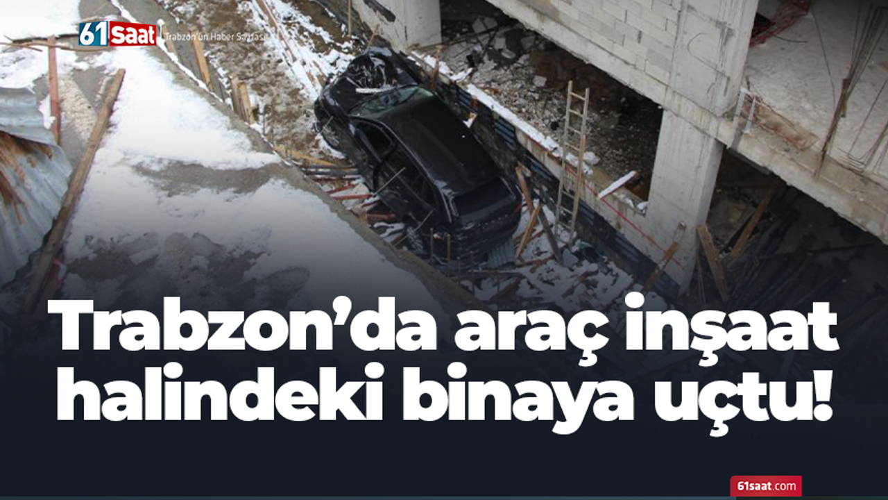 Buzlanan yolda sürücüsünün direksiyon hakimiyetini kaybetmesi sonucu otomobil inşaat halindeki bir binanın zeminine düştü.