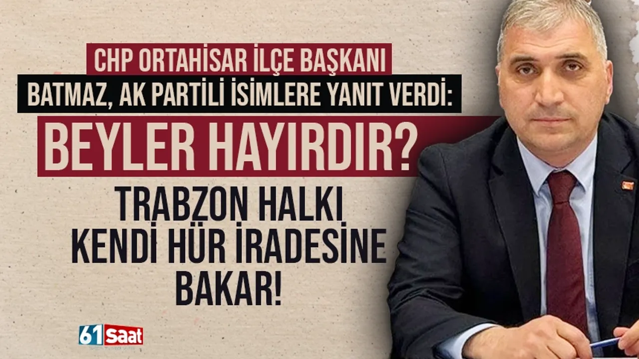 Batmaz, ""Trabzon’u ve Trabzonlunun iradesini yeterince tanımadığınız ortada. Bu nedenle sözlerinizi seçerek konuşmanızda fayda var. Attığınız lafın nereye varacağını, kime dokunacağını iyi hesap edin. Trabzon halkı, tepeden inme talimatlara değil, kendi hür iradesine bakar.