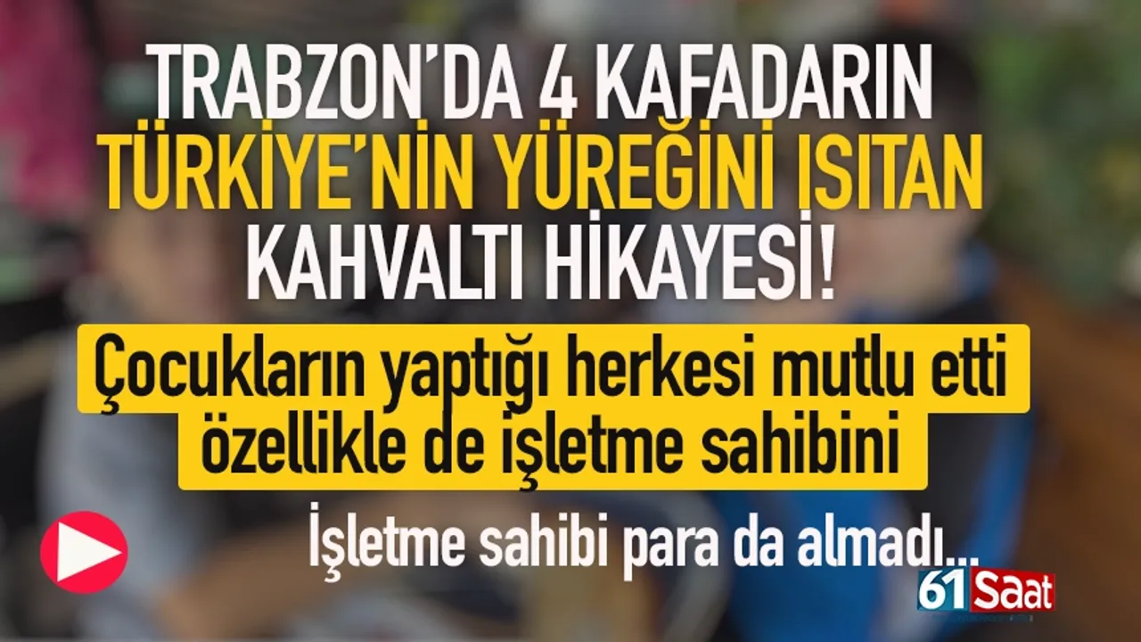 Trabzon’un Yomra ilçesinde yaşanan bir olay, tüm Türkiye’de tebessüm uyandırdı. Kaşüstü Cumhuriyet Ortaokulu’na giden dört arkadaş, anne ve babalarından aldıkları harçlıkları biriktirerek birlikte kahvaltı yapmak için ilçedeki bir işletmeye gitti.