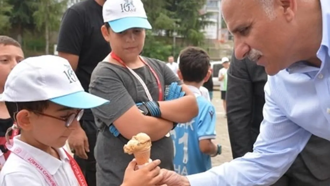 Trabzon Büyükşehir Belediye Başkanı Murat Zorluoğlu, geçtiğimiz günlerde miniklere dönük spor okullarının kapanış töreninde anlamlı bir jest gerçekleştirdi. Etkinliklere katılan tüm çocuklara birer top dondurma armağan etti. Ancak bu jest, sadece bir dondurma hediyesi değil, aslında daha derin anlamlara işaret ediyor.