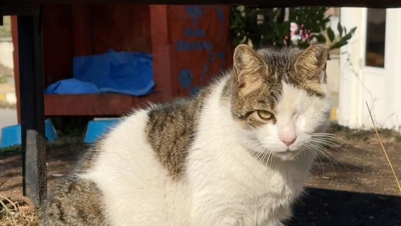 Kedinin bir gözünün görmediğini belirten Coşkun, "Otopark kısmında hastane personelimiz bakıyor, mamasını veriyor. Ona orada yuva kuruldu." dedi.