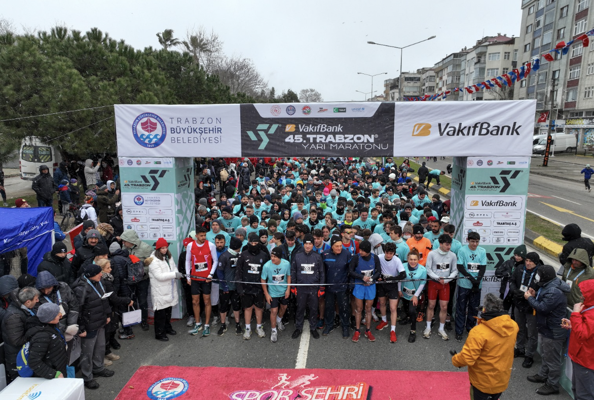Trabzon’un kurtuluş günü kutlamaları kapsamında Trabzon Büyükşehir Belediyesi Gençlik ve Spor Hizmetleri Dairesi tarafından her yıl düzenlenen Uluslararası Trabzon Yarı Maratonu'nun 45'incisi bugün yapıldı. Ana sponsorluğunu VakıfBank'ın üstlendiği, Valilik, Gençlik ve Spor İl Müdürlüğü ile Türkiye Atletizm Federasyonu'nun da desteklediği maraton, 'Her Adımda Barışa Koş' sloganı ile koşuldu. Büyükşehir Belediye Başkan Vekili Faruk Kanca, bin 216 sporcunun katıldığı maratonun startını, Vali Yardımcısı Fatih Kızıltoprak, Gençlik ve Spor İl Müdürü Lokman Arıcıoğlu ve Türkiye Atletizm Federasyonu Başkanı Dr. Ahmet Karadağ ile birlikte verdi. Halk Koşusu ile başlayan maraton, 21 kilometrelik Uluslararası Trabzon Yarı Maraton, 10 kilometrelik Çeyrek Maraton ve 1 kilometrelik Çocuk Koşusu ile devam etti. Kar yağışı ve soğuk havaya rağmen kalabalık bir katılımla gerçekleşen maraton, yarışmacıların üstün performanslarıyla birlikte tamamlandı.