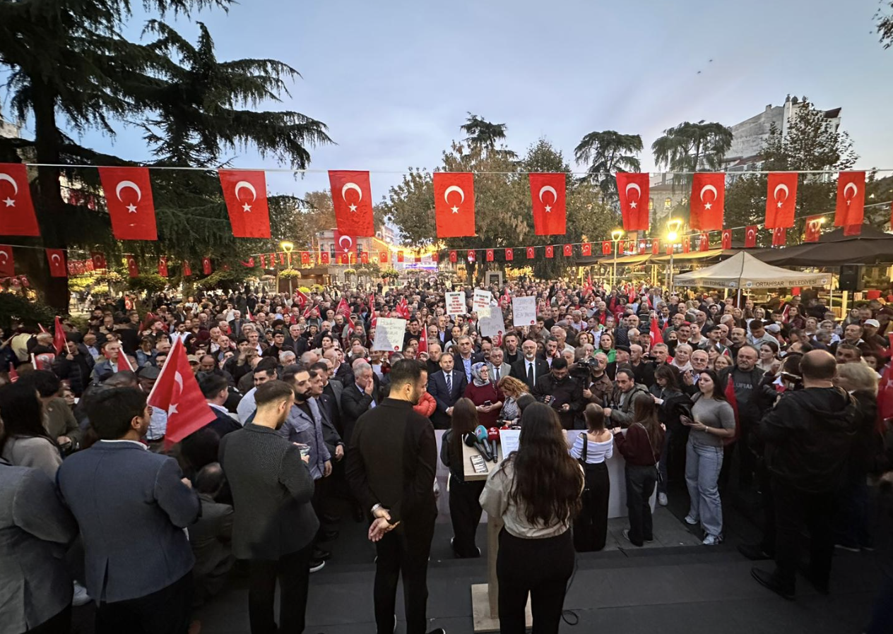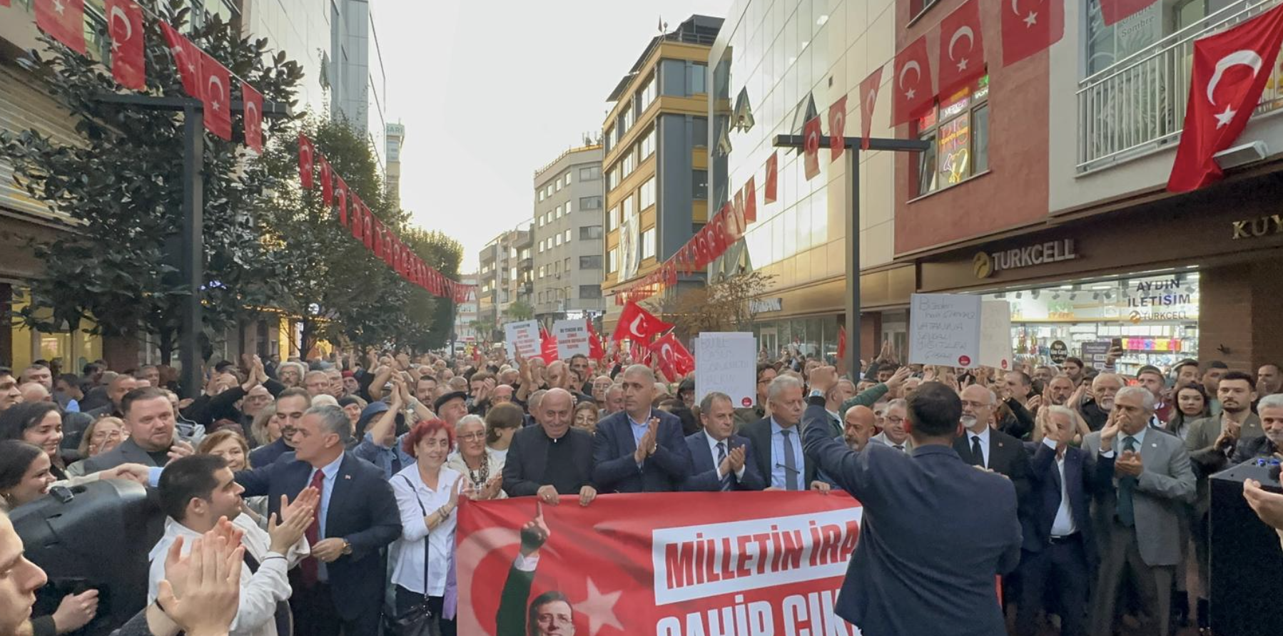Maraş Caddesi Postane önünden başlayan yürüyüş, Atatürk Alanı Meydan Parkı’nda sona erdi. Saat 17.00’de başlayan etkinliğe çok sayıda vatandaş katılırken, katılımcılar ellerinde Türk bayrakları ve pankartlarla İmamoğlu’na destek mesajları verdi.