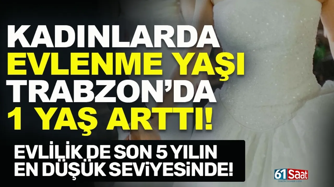 61saat'in haberine göre; Kaba evlenme hızı verilerine bakıldığında Trabzon, Türkiye genel ortalamasının gerisinde seyrediyor. 2025 yılında Türkiye genelinde evlenme hızı 6.43 olarak gerçekleşirken, Trabzon’da bu oran 5.68’e kadar düştü. Şehirde 2022 yılında 6.15 olan evlenme hızı, her geçen yıl azalarak son 5 yılın en düşük seviyesine ulaştı.