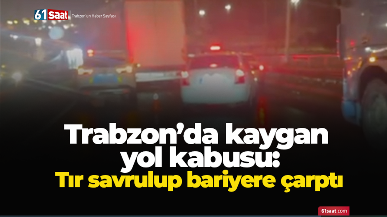 Trabzon’da gece saatlerinde havalimanından Trabzon yönünde seyir halinde olan bir tır, kaygan zemin nedeniyle sürücüsünün direksiyon hakimiyetini kaybetmesi sonucu yan bariyerlere çarparak durabildi.