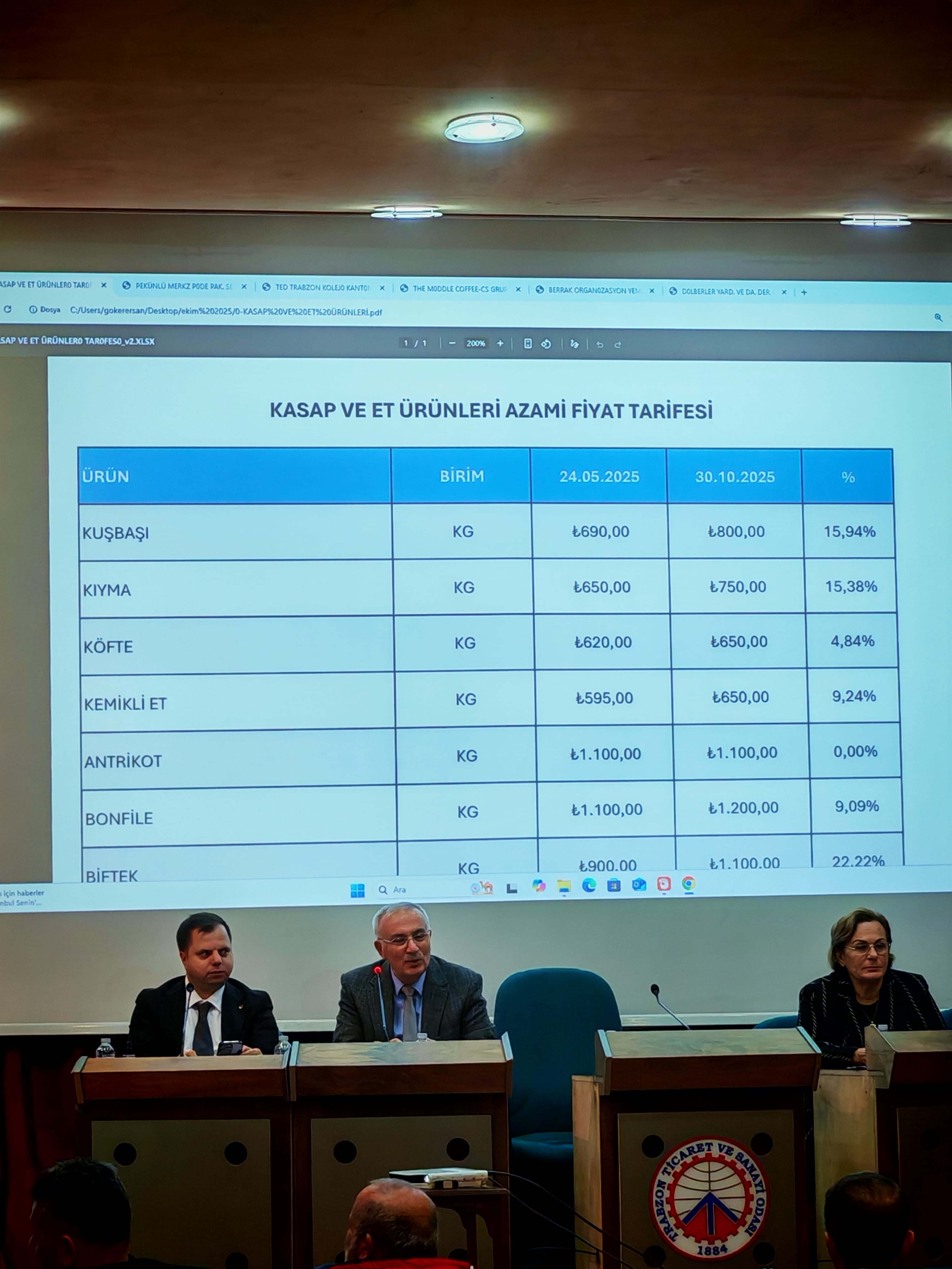 Toplantıda Trabzon Ticaret ve Sanayi Odası (TTSO) tarafından belirlenen kasap ve et ürünleri azami fiyat tarifesi güncellendi.