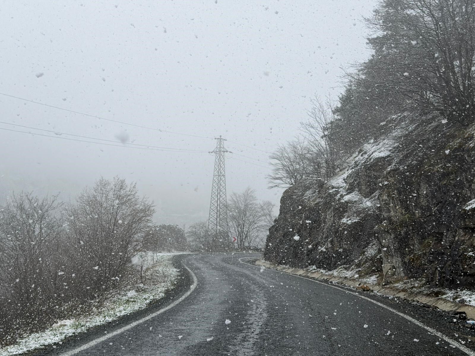 Trabzon ile Gümüşhane arasında yer alan Zigana Dağı'nın Maçka ilçesine bakan yamaçlarında yağan lapa lapa kar objektiflere yansıdı.