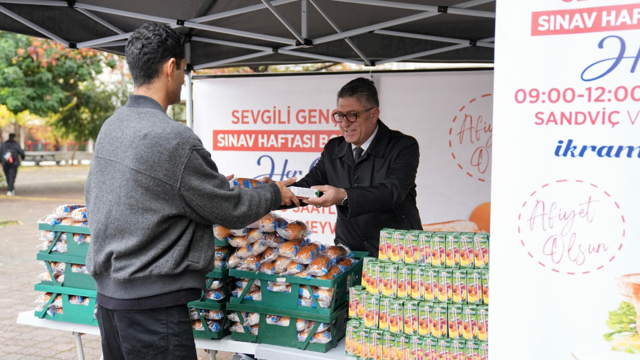 Öğrencilere yönelik birçok proje ve desteği hayata geçirdiklerini belirten Ortahisar Belediye Başkan Yardımcısı Ernul Arslan, “Başkanımız Ahmet Kaya, eğitim-öğretim faaliyetlerine çok önem veriyor. Okul öncesinden üniversiteye kadar çeşitli proje ve desteklerle çocuklarımızın, gençlerimizin yanındayız. Bu kapsamda üniversite öğrencilerimize, sınav haftalarında geleneksel hale getirdiğimiz stantlarımızı kurarak sandviç ve meyve suyu ikram ediyoruz. Kahvaltı yapamadan okula gelen öğrencilerimizin sınavlara tok olarak girmesi, başarısına da katkı sağlayacaktır. Bütün öğrencilerimize sınavlarında başarılar diliyorum” dedi.