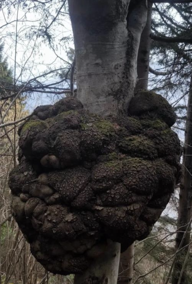 Ağacın bakteri, mantar veya fiziksel yaralanmalara karşı kendini korumak için hücrelerini kontrolsüzce büyütmesiyle oluşan bu kütle, Araklı’da bulunan bu örnekte devasa boyutlara ulaşmış durumda.