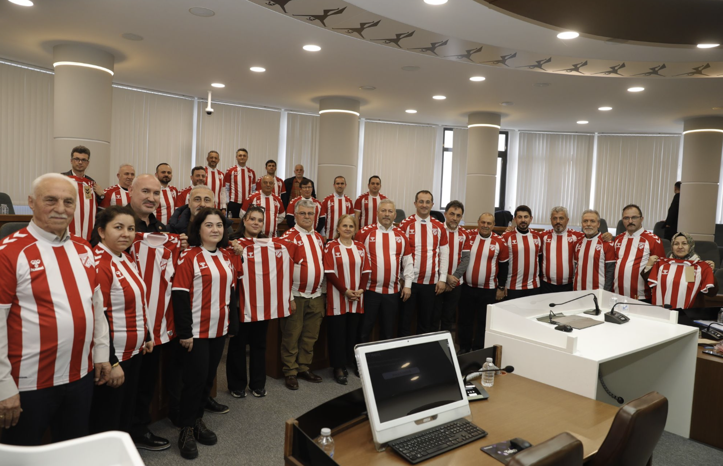 Akçaabat Belediye Başkanı Osman Nuri Ekim, Belediye Meclisi toplantısında anlamlı bir jest gerçekleştirerek meclis üyelerine şehrimizin köklü kulübü Sebat Gençlik Spor’un formasını hediye etti.