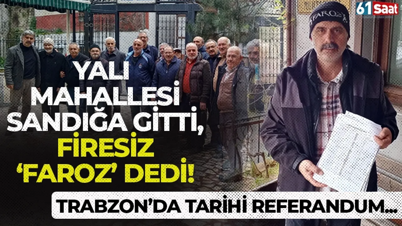 Trabzon'un Yalı Mahallesi sakinleri, mahallelerinin isminin resmi olarak "Faroz Yalı Mahallesi" olarak değiştirilmesi talebiyle dün sandık başına gitti. Düzenlenen referanduma katılan 1120 vatandaşın istisnasız tamamı isim değişikliğine "Evet" diyerek tarihi bir karara imza attı.