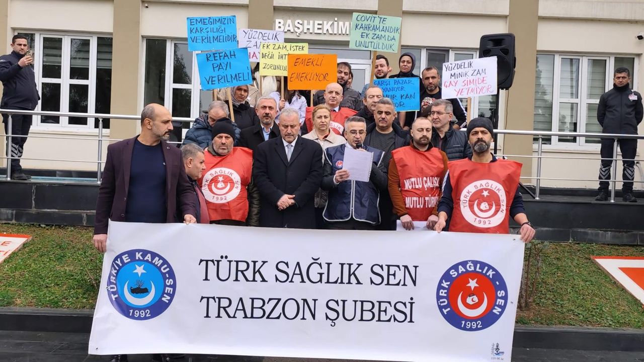 Türk Sağlık-Sen Trabzon Şubesi, sağlık ve sosyal hizmet çalışanlarının yaşadığı sorunlara dikkat çekmek amacıyla basın açıklaması düzenledi. Şube yönetimi adına yapılan açıklamada; artan enflasyon karşısında yetersiz maaş artışları, çalışma koşulları, atama ve kadro sorunları gibi pek çok başlıkta çözüm çağrısı yapıldı. “Gerçekler görmezden gelinemez, emekçinin hakkı yok sayılamaz” denildi.