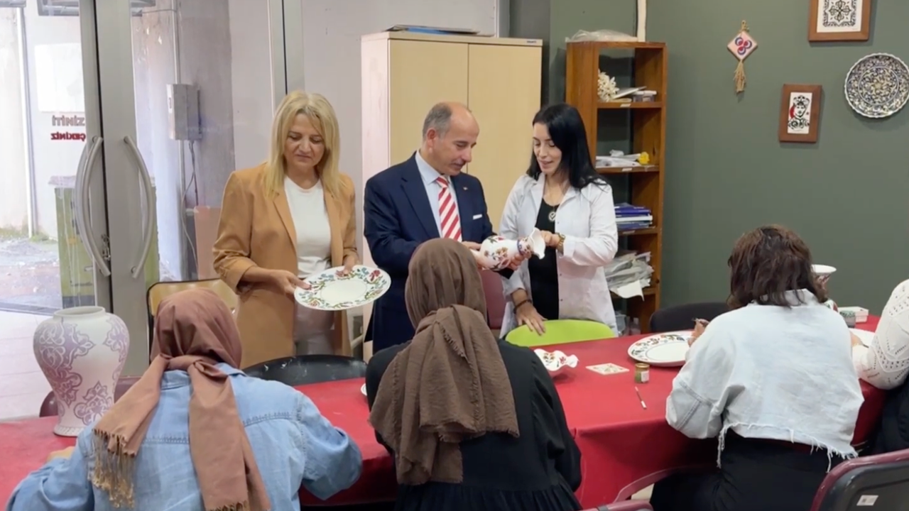 Bunlardan birisinin de çini boyama kursu olduğunu anlatan Çakır, "Çini boyama kursunda Denetimli Serbestlik Müdürlüğü ile işbirliğinde misafir kursiyerlerimize eğitim vermek, aldıkları el becerileriyle de aile ekonomisine katkı sağlamak, en önemlisi onları buradan mutlu göndermek istiyoruz." diye konuştu.