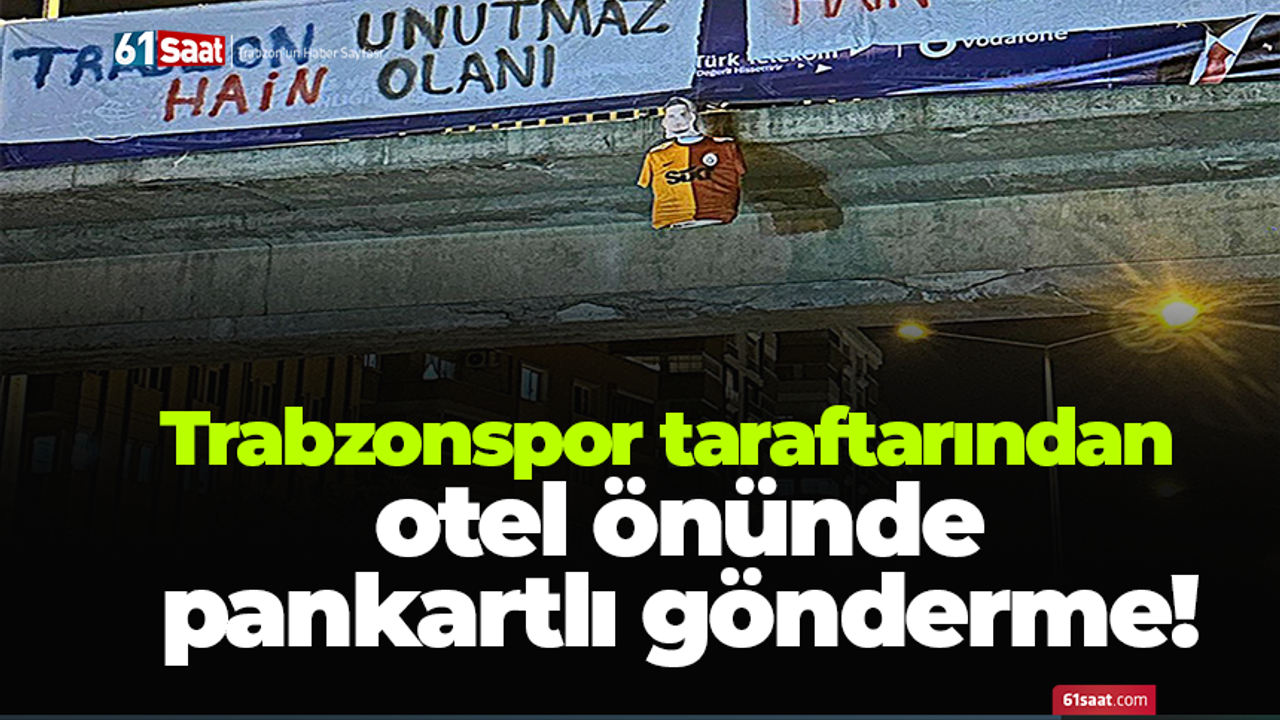 Trabzonspor taraftarları, Galatasaray’ın konakladığı otelin önüne pankartlar astı.