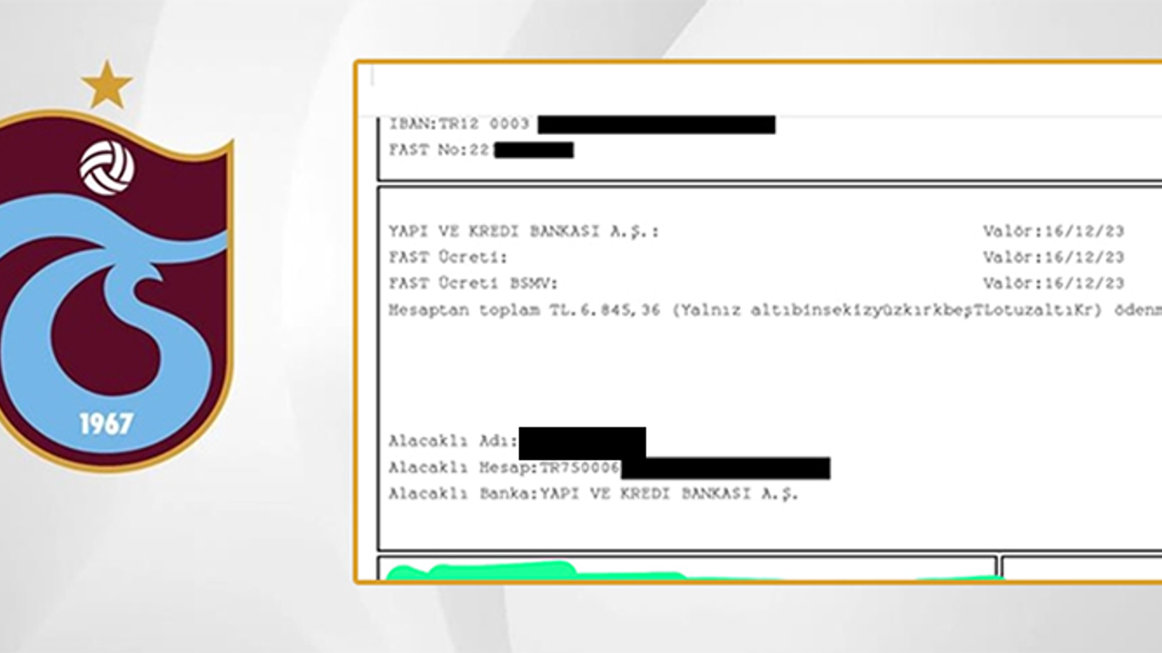 68.40 TL KOMİSYON İSTEDİM, 6 BİN 840 TL YOLLADILAR'Bana daha önce hiç kullanmadıkları WhatsApp üzerinden dekont göndermemi istediler ve paranın hemen yatırılmasını istediler. O anda bir sorun olduğunu anladım. Daha sonra kulübümüz Trabzonspor’un yaptığı dolandırıcılık uyarıları aklıma geldi. Orada ‘Trabzonspor sizden para istemez’ ifadeleri yer alıyordu. Olayın tam anlamıyla farkına varınca yerlerini öğrenmeye çalıştım. Bana IBAN adreslerini kodladılar. Bir grafik şirketi çıktı. Kart limitimin dolduğunu söyledim, 68.40 TL komisyon istiyor gönderemem dedim. Karşımdaki kişi 68.40 TL’yi göndereceğini söyledi, ben de tamam dedim. Ardından telefonuma gelen bildirimde adeta şok oldum. Bana 68.40 TL yerine 6.840 TL gönderdiler. Yani bir 0 daha eklediler. Şimdilerde ise telefonum susmuyor, farklı telefonlardan sürekli aranıyorum ‘Lütfen para gönderir misin, İade talebi oluşturduk’ diyorlar.'