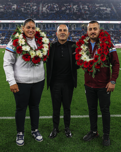 Trabzonspor Yönetim Kurulu tarafından, Genç Kadınlar Avrupa Boks Şampiyonası’nda altın madalya kazanan sporcu Havvanur Kethüda ve antrenörü Muhammet Çat için Papara Park’ta özel bir tören düzenlendi.