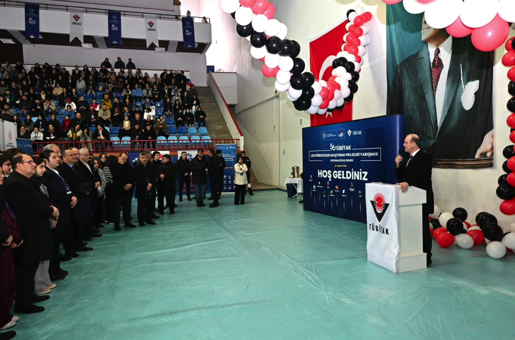 56. TÜBİTAK Lise Öğrencileri Araştırma Projeleri Yarışması Erzurum Bölge Sergisi'nin açılışı, Karadeniz Teknik Üniversitesi (KTÜ) Rektörü Prof. Dr. Hamdullah Çuvalcı’nın iştiraki ile KTÜ Hasan Polat Beden Eğitimi ve Spor Merkezi'nde gerçekleştirildi. Açılışta bir konuşma gerçekleştiren Rektör Prof. Dr. Hamdullah Çuvalcı, Üniversite olarak böyle bir organizasyona ev sahipliği yapmaktan büyük bir memnuniyet duyduğunu dile getirerek “TÜBİTAK tarafından düzenlenen bu tür yarışmalar, gençlerin yeteneklerini sergilemelerine ve akademik dünyaya adım atmalarına fırsat tanıyor. Üniversite olarak bilime ve gençlerimizin inovatif fikirlerine her zaman destek vermeye devam edeceğiz. Açılış vesilesi ile sergiye tüm halkımızı davet ediyorum.” dedi. Rektör Prof. Dr. Hamdullah Çuvalcıkonuşmasının ardından 10 ilden gelen uygulamalı projelerin yer aldığı stantları gezdi ve genç mucitlerle sohbet etti.