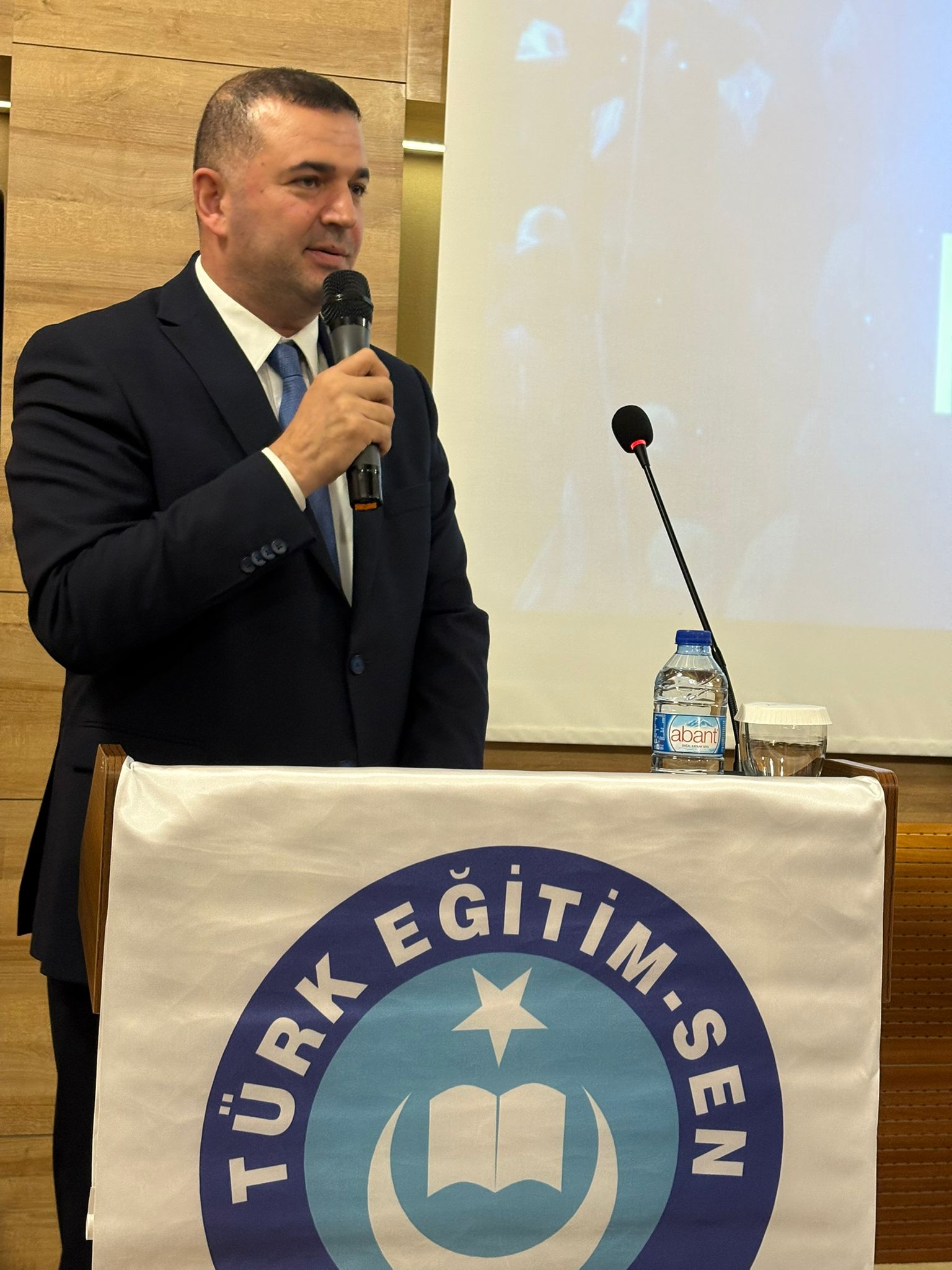 Toplantıda konuşma yapan MHP Trabzon İl Başkanı Sivrikaya, "Eğitim çalışanlarının gerçek temsilcisi, hak mücadelesinin amiral gemisi, Türkiye’nin sendikası Türk Eğitim-Sen’in Trabzon 8. Olağan Genel Kurulu'na katılmaktan büyük memnuniyet duyuyoruz" dedi.