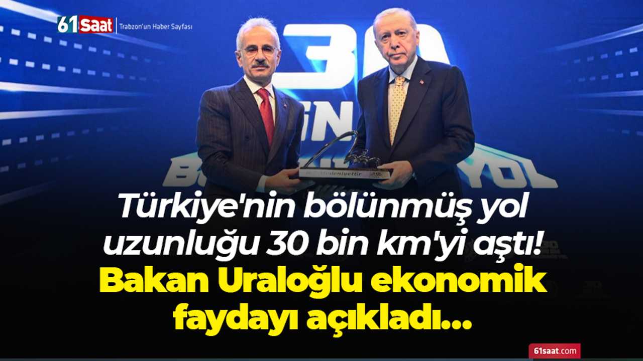 Bakan Uraloğlu, “30 bin kilometre demek dünyanın çevresinin dörtte üçü demektir. Bölünmüş yol ağımız ve otoyollarımız sayesinde zamandan ve akaryakıttan her yıl toplam 303 milyar liralık tasarruf yapıyoruz. Yıllık 6,3 milyon ton karbon emisyonunu atmosferimizden bertaraf ediyoruz. Gelecek nesillerimize de daha temiz bir Türkiye bırakıyoruz.” dedi.