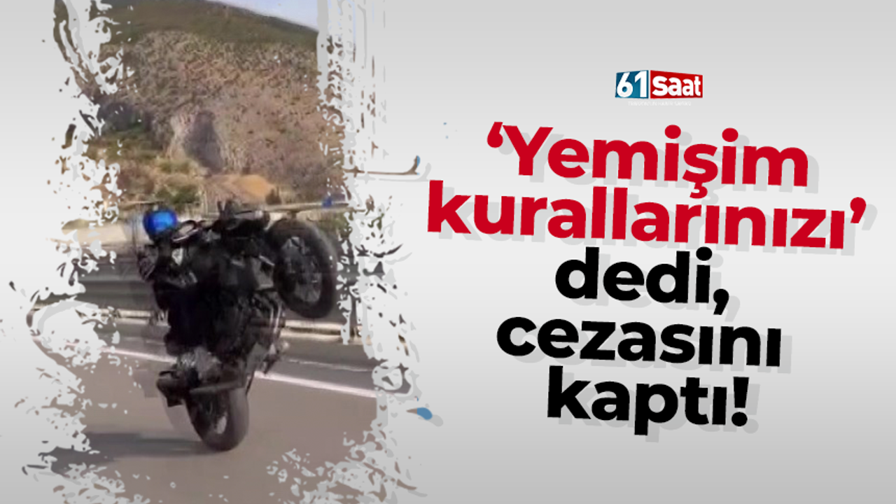 Açıklamada, "Motosikletiyle çeşitli kural ihlalleri yaparak, trafik güvenliğini tehlikeye düşüren ve çektiği bu görüntüleri de sosyal medyada, 'Yemişim kurallarınızı' başlığıyla paylaşan şahıs, İl Jandarma Komutanlığımızın sanal devriyeleri tarafından yakalanarak, gerekli adli ve idari işlemler yapılmıştır. Amasya’da vatandaşlarımızın can güvenliğini tehlikeye sokanlara asla müsamaha gösterilmeyecektir" ifadelerine yer verildi.