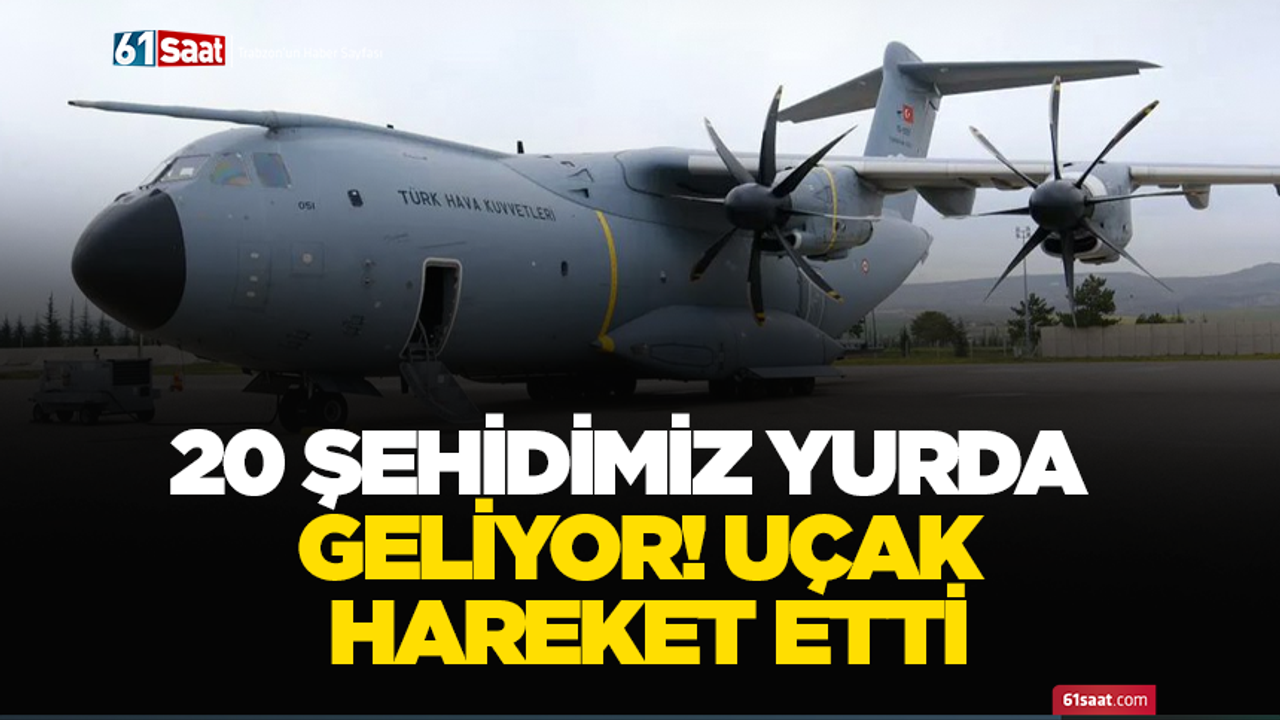 Gürcistan'ın Kakheti bölgesine bağlı Siğnaği'de 11 Kasım'da Türk Silahlı Kuvvetleri'ne ait C-130 tipi askeri kargo uçağının düşmesi sonucu şehit olan 20 Mehmetçiğin naaşları Türkiye’ye getiriliyor. Mehmetçiklerin naaşlarını taşıyan "Koca Yusuf" A400M uçağı, başkent Tiflis'teki Şota Rustaveli Uluslararası Havalimanı'ndan Ankara'ya hareket etti. Şehitlerin naaşları Türkiye’ye getirilmesinin ardından düzenlenecek olan törenin ardından defin yerlerine uğurlanacak.