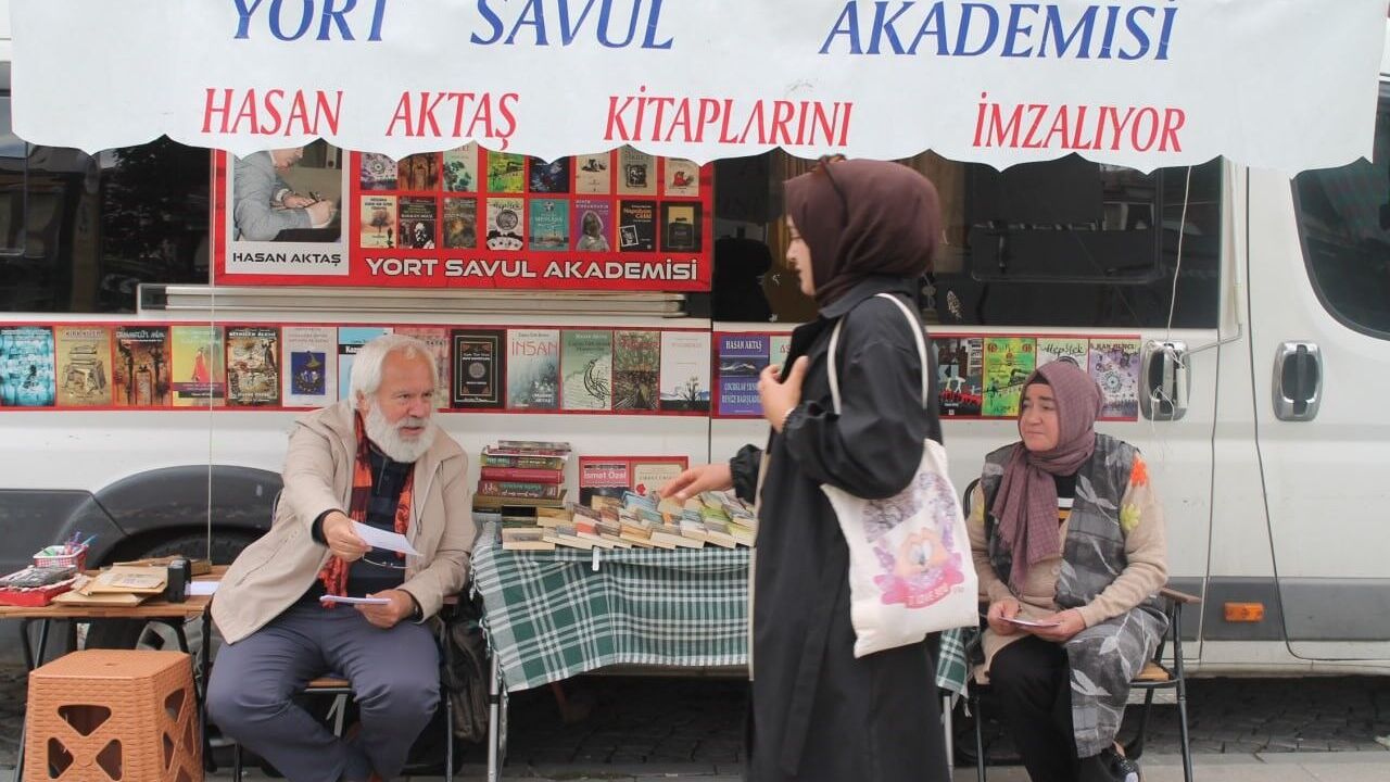 4 yıl önce aldığı minibüsü karavana dönüştüren Aktaş, Anadolu’da Türkçe şiirin öncüsü, halk şairi olarak bilinen Yunus Emre’nin ’Kul Padişahsız Olmaz’ eserinde geçen "Padişahı kim bildi, kul etmese yort savul" dizesinden esinlenerek Yort Savul Akademisini kurduğunu belirtti. Aktaş, ’Yoldan kaç, yoldan çekil’ anlamına gelen Yort Savul Akademi ismiyle dönüştürdüğü karavanın içine kitaplarını doldurarak Bayburt Cumhuriyet Caddesi’nde yerini aldı. Burada ziyaretçileriyle bir araya gelen Aktaş, kitaplarını imzaladıktan sonra ziyaretçilerine çay ikramında bulunup, kültür-sanat, tarih ve edebiyat üzerine sohbetler gerçekleştiriyor.