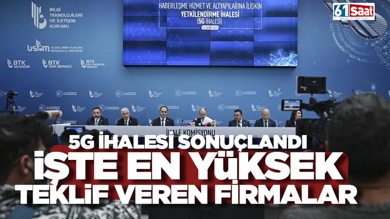 Bilgi Teknolojileri ve İletişim Kurumu (BTK) tarafından düzenlenen 5G yetkilendirme ihalesinde ilk teklifler açıklandı. 700 MHz frekans bandında yapılan kapalı zarf usulü ihalede en yüksek teklifleri Turkcell, Vodafone ve Türk Telekom verdi.