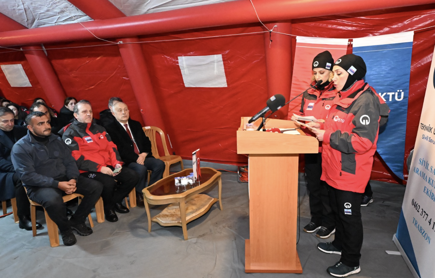 15 Temmuz Demokrasi Alanı'nda kurulan sahra çadırında gerçekleştirilen programa; KTÜ Rektörü Prof. Dr. Hamdullah Çuvalcı, Trabzon Büyükşehir Belediye Başkan V. Ahmet Yüksel Gülay, Trabzon İl Afet ve Acil Durum Müdürü Mustafa Hüseyinpaşaoğlu, Rektör Yardımcısı Prof. Dr. Bünyamin Er ve Prof. Dr. Ali Temiz, Genel Sekreter V. Prof. Dr. Cemil Rakıcı, KTÜ Arama Kurtarma Ekibi, Kızılay temsilcileri, UMKE personeli, AFAD personeli ile akademisyenler ve çok sayıda davetli katıldı.