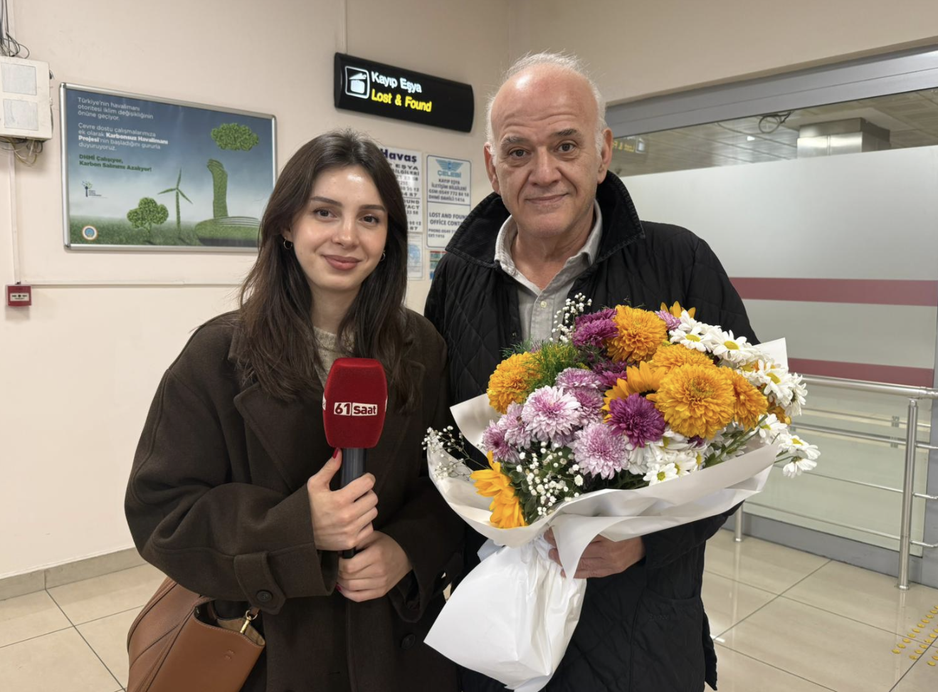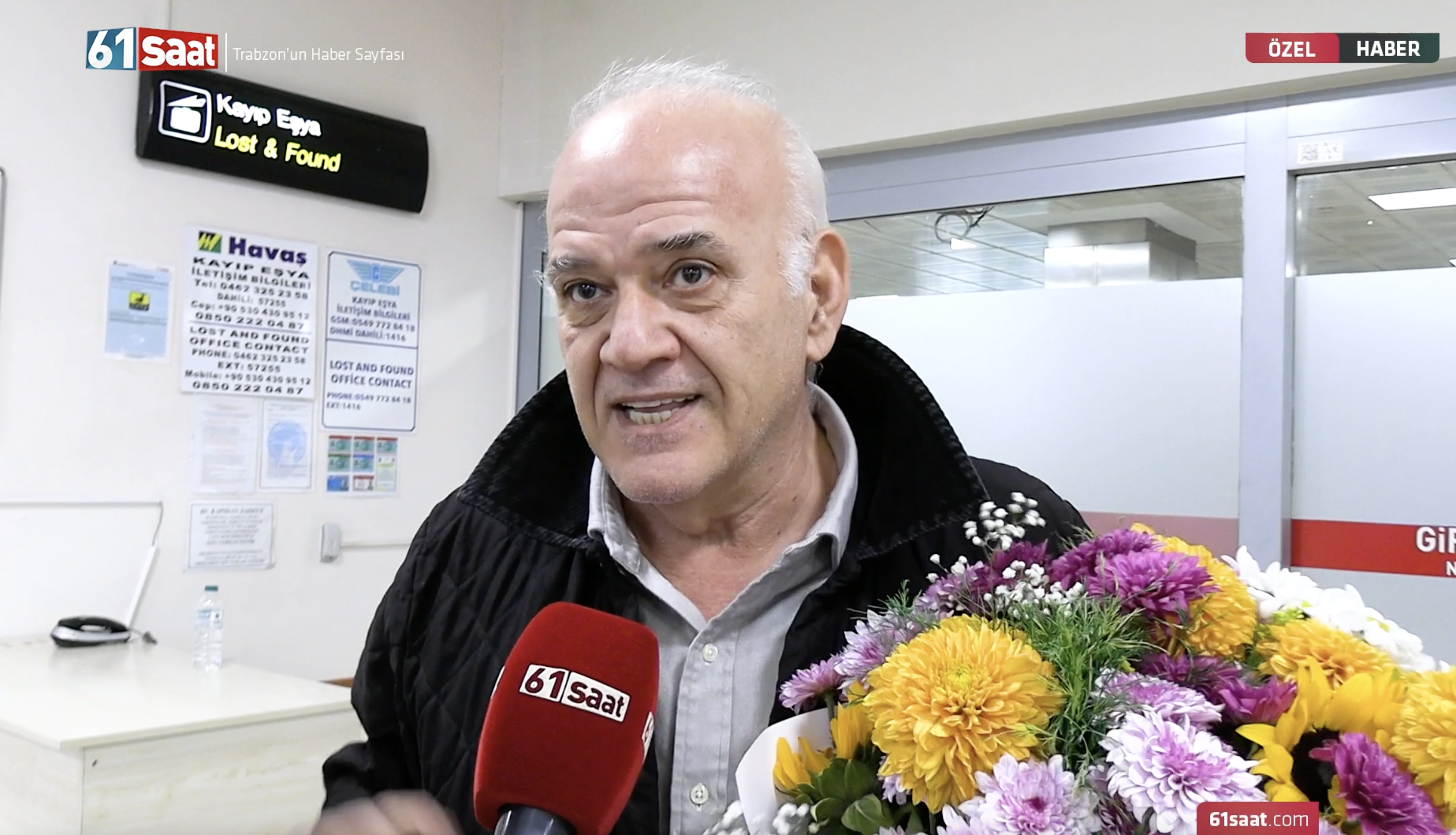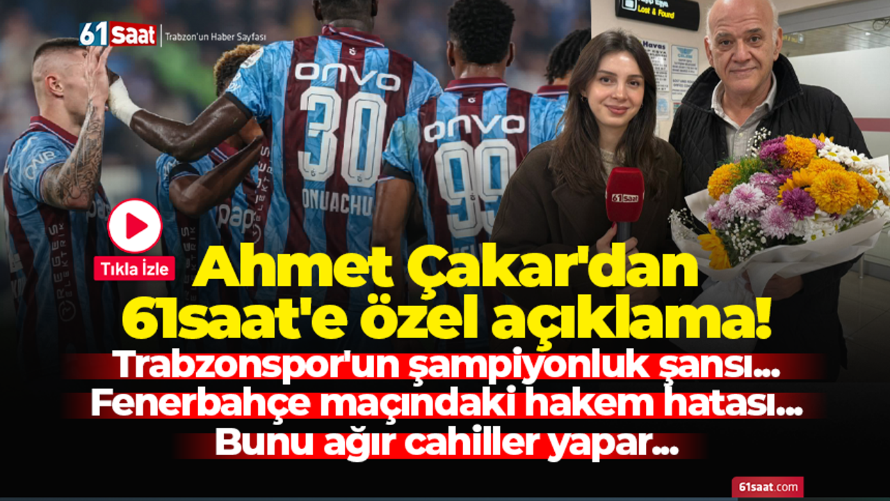 Türkiye’nin önde gelen spor yorumcularından eski hakem Ahmet Çakar bugün öğle saatlerinde Trabzon’a geldi. Trabzon Havalimanı’nda 61saat’in sorularını yanıtlayan Ahmet Çakar, Trabzonspor’un şampiyonluk yarışında olduğunu belirtti. Ahmet Çakar'ı Trabzon'da geçmiş yıllara dayanan dostu Hamza Mısır karşıladı.