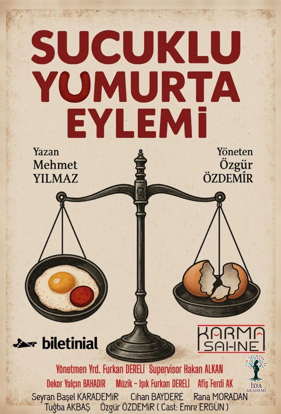 Akçaabat, absürdün ve kara mizahın harmanlandığı yeni tiyatro oyununa ev sahipliği yapacak. "Sucuklu Yumurta Eylemi" adlı oyun, 17 Ocak 2026 Cumartesi günü saat 20.00’de Erol Günaydın Sanat Merkezi’nde tiyatroseverlerle buluşacak.