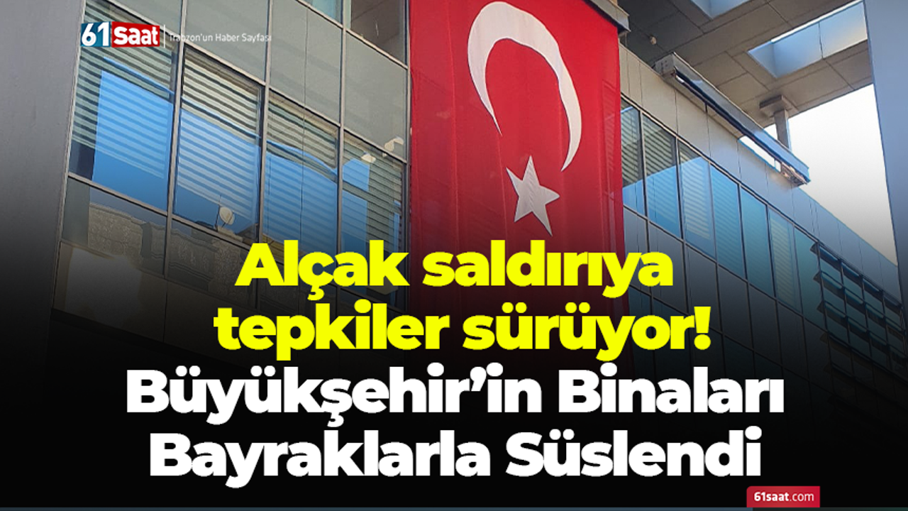 Trabzon Büyükşehir Belediye Başkanı Ahmet Metin Genç, Nusaybin'de şanlı bayrağımıza yapılan alçak saldırıya sert tepki gösterdi. Başkan Genç’in talimatıyla, Büyükşehir Belediyesi’nin Atapark’taki ana binası, Meydan’daki tarihi bina, Yalıncak'taki ek hizmet binası, Değirmendere'deki TİSKİ Genel Müdürlüğü binası, Hamamizade İhsan Bey Kültür Merkezi ile, Kültür, İtfaiye, Sosyal Hizmetler ve Gençlik Spor dairelerinin hizmet verdiği tüm binalar dev Türk bayraklarıyla süslendi.