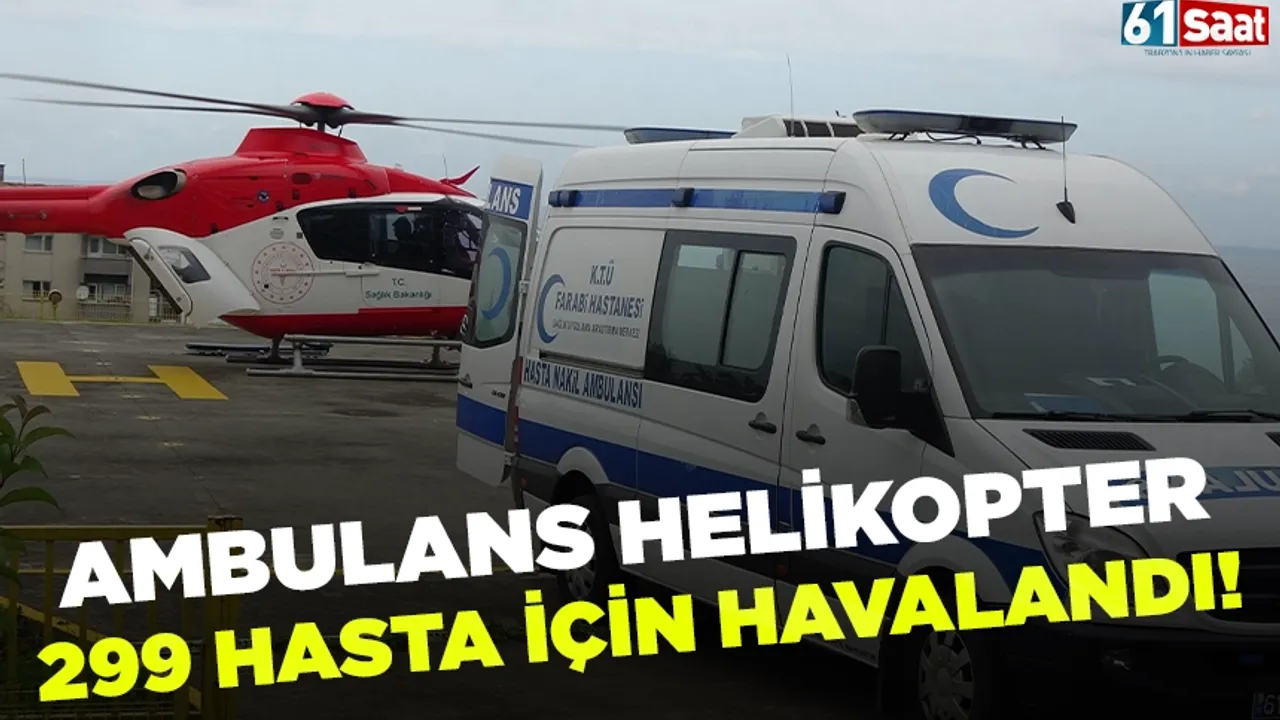 Sağlık Bakanlığı tarafından Trabzon-Rize-Gümüşhane-Giresun ve Artvin illerinden oluşan bölge illerimizdeki olası hasta, yaralılara müdahale edilebilmesi adına Trabzon’da konuşlandırılan Helikopter Ambulans 2025 yılı içerisinde toplam 299 hastanın nakil işlemini gerçekleştirdi.