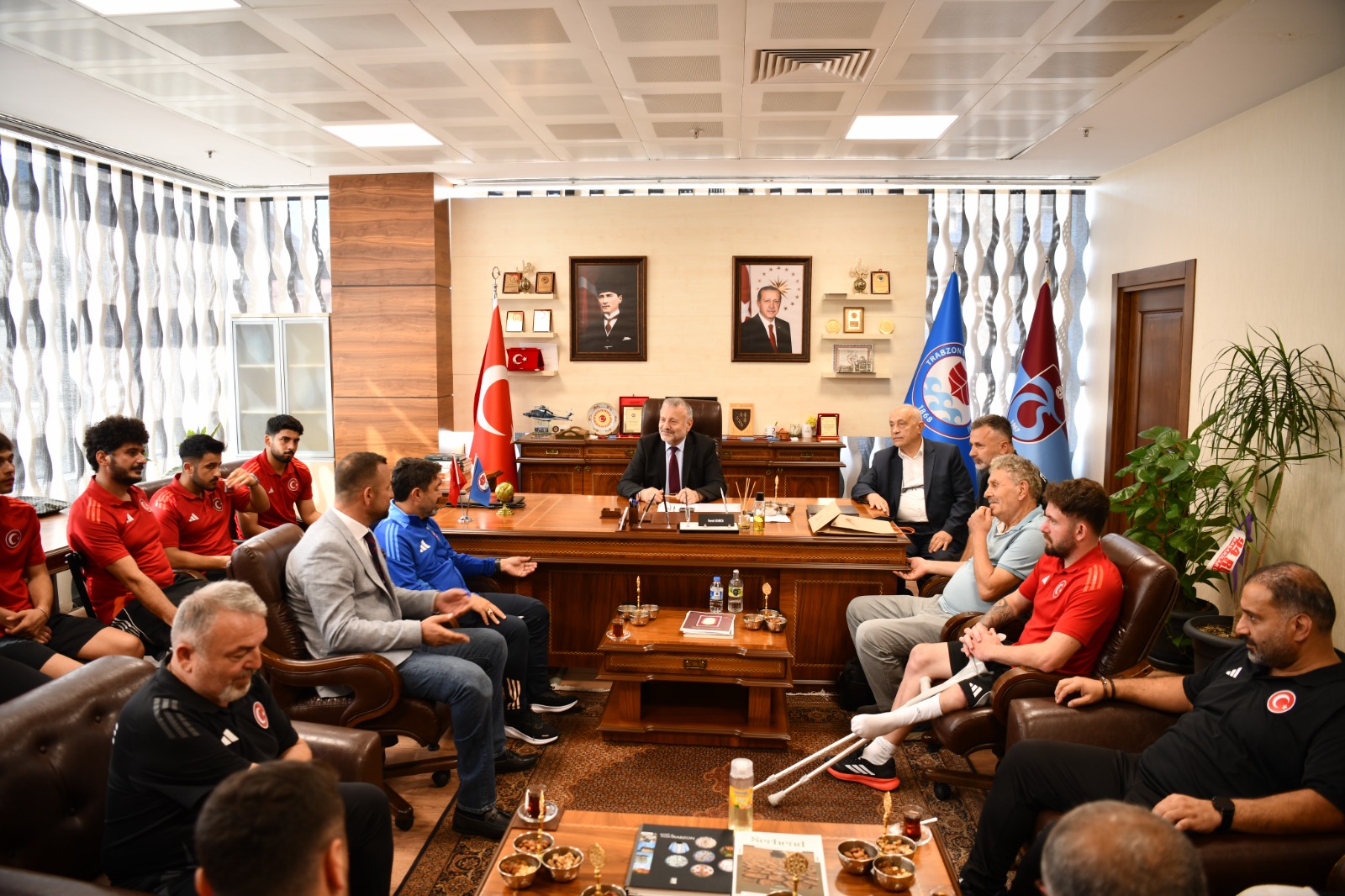 Ampute Uluslar Ligi karşılaşmaları için Trabzon’da bulunan Ampute Milli Futbol Takımı, Trabzon Büyükşehir Belediyesi'ni ziyaret etti. Başkan Vekilleri Faruk Kanca ve Ahmet Yüksel Gülay'ın ağırladığı ekipte, A Milli Takım Koordinatörü Faruk Kuduban, A Milli Takım Teknik Direktörü İsmail Temiz, oyuncular ve teknik heyet yer aldı.