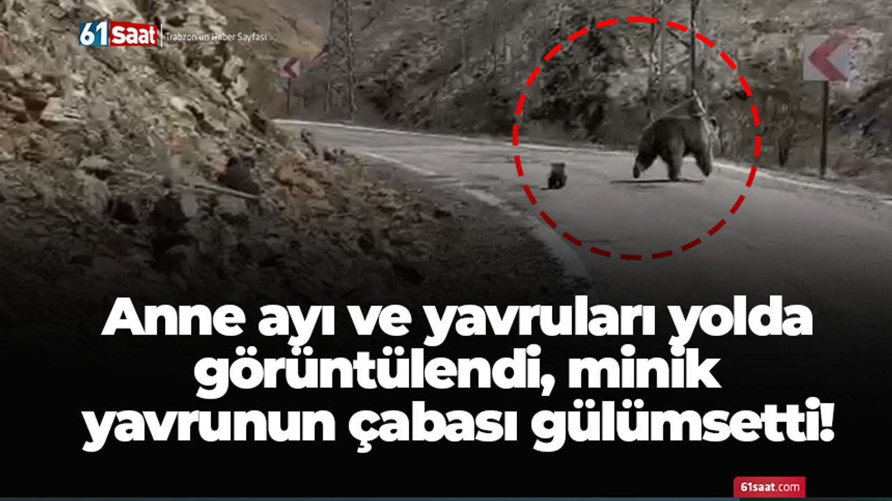 Gümüşhane merkeze bağlı Yağmurdere köyünde bir vatandaş tarafından kaydedilen görüntülerde, anne ayının iki yavrusuyla birlikte yolun karşısına geçmeye çalıştığı anlar yer aldı. Bu sırada yoldan araçların geldiğini fark eden anne ayı hızla yamaçtan aşağı doğru kaçtı. Yavrulardan biri annesini takip ederek onunla birlikte gözden kaybolurken, annesi ve minik kardeşinin kaçtığını fark edemeyen diğer yavru ise dağa tırmanmaya devam etmeye çalıştı.