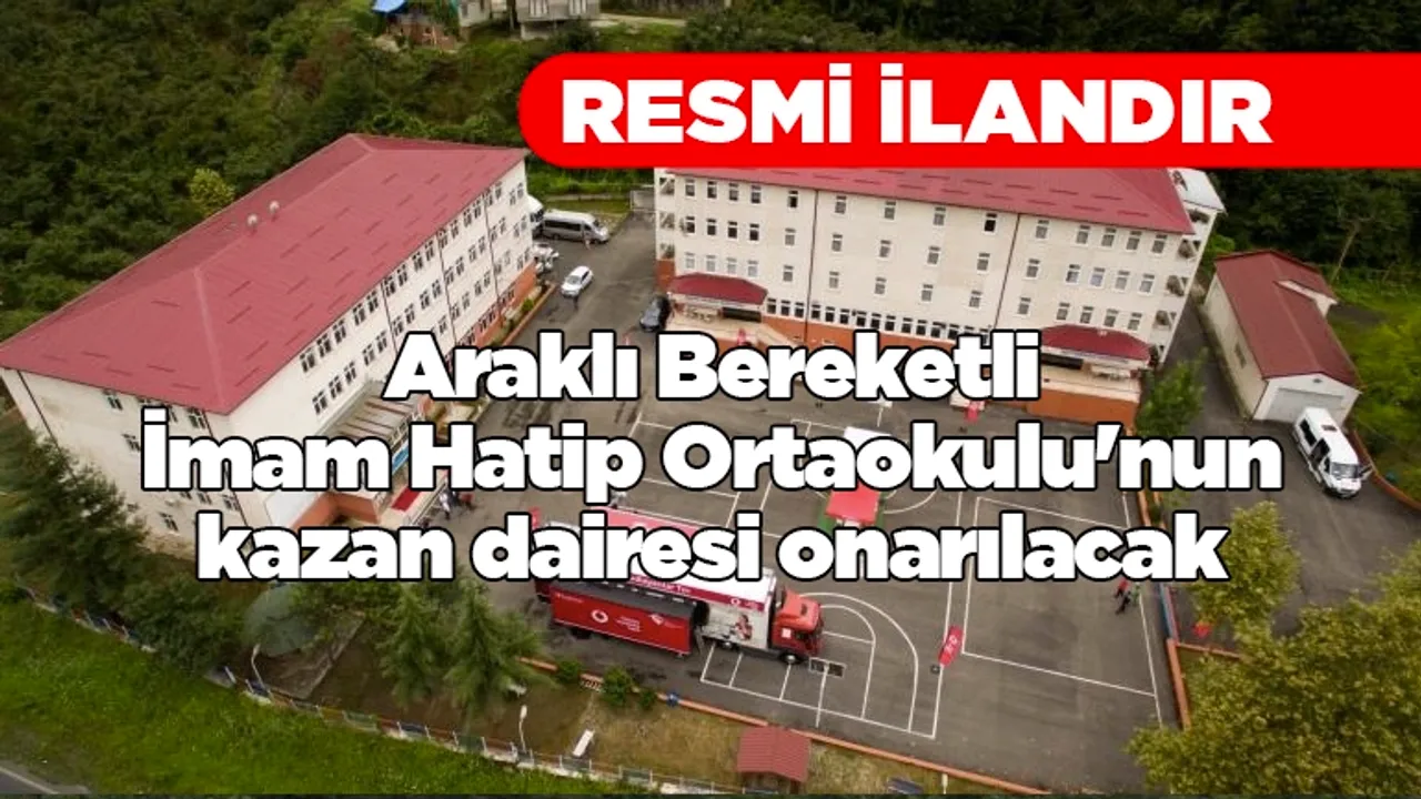 Trabzon Araklı Bereketli İmam Hatip Ortaokulu Kazan Dairesi Onarımı Yapım İşi yapım işi 4734 sayılı Kamu İhale Kanununun 19 uncu maddesine göre açık ihale usulü ile ihale edilecek olup, teklifler sadece elektronik ortamda EKAP üzerinden alınacaktır. İhaleye ilişkin ayrıntılı bilgiler aşağıda yer almaktadır: