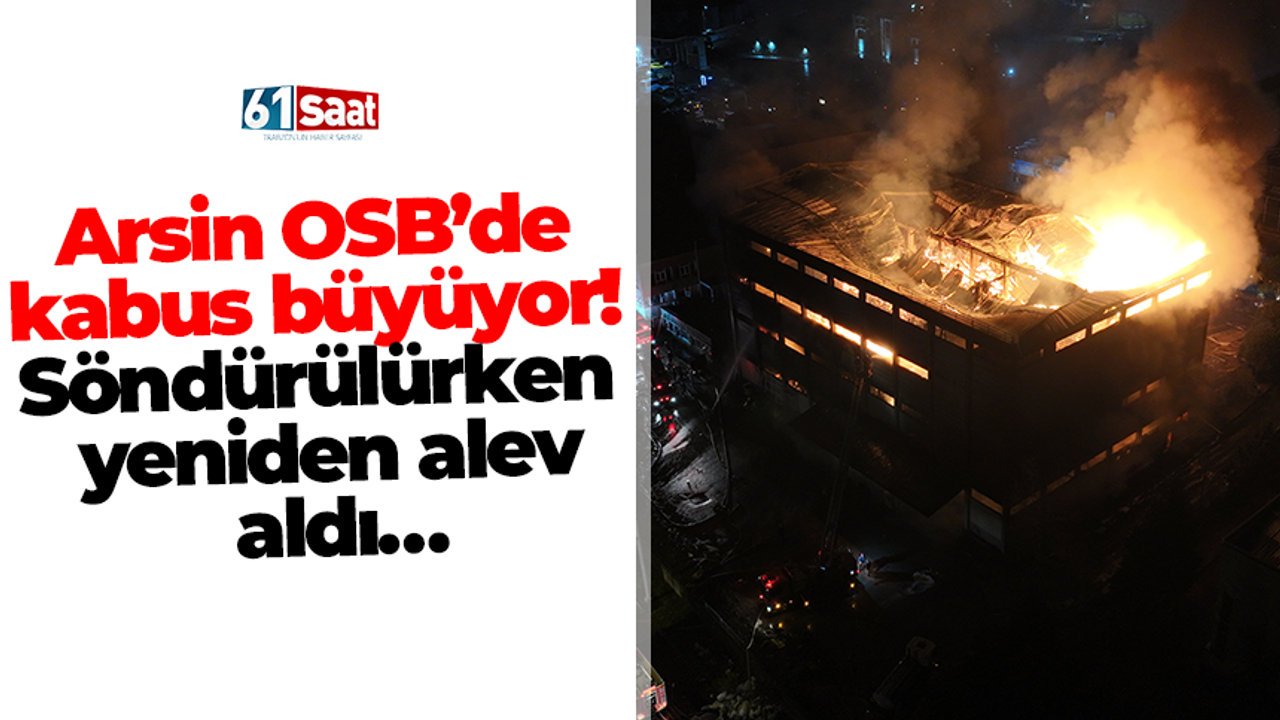 Trabzon’un Arsin Organize Sanayi Bölgesi’nde faaliyet gösteren bir fındık fabrikasında çıkan yangın, ekiplerin yoğun müdahalesine rağmen soğutma çalışmaları sırasında yeniden alevlendi. Kısa sürede büyüyen yangın, fabrikanın büyük bölümünü sararken, bölgeye çok sayıda itfaiye ekibi takviye gönderildi. Yangının kontrol altına alınması için çalışmalar aralıksız sürdürülürken, ekipler alevlerin çevredeki diğer tesislere sıçramaması için yoğun çaba harcıyor. Zaman zaman etkisini artıran yangın nedeniyle fabrikanın çevresinde geniş güvenlik önlemleri alındı. Yangının alevlendiği anları ve ekiplerin müdahalesi dronla görüntülendi.