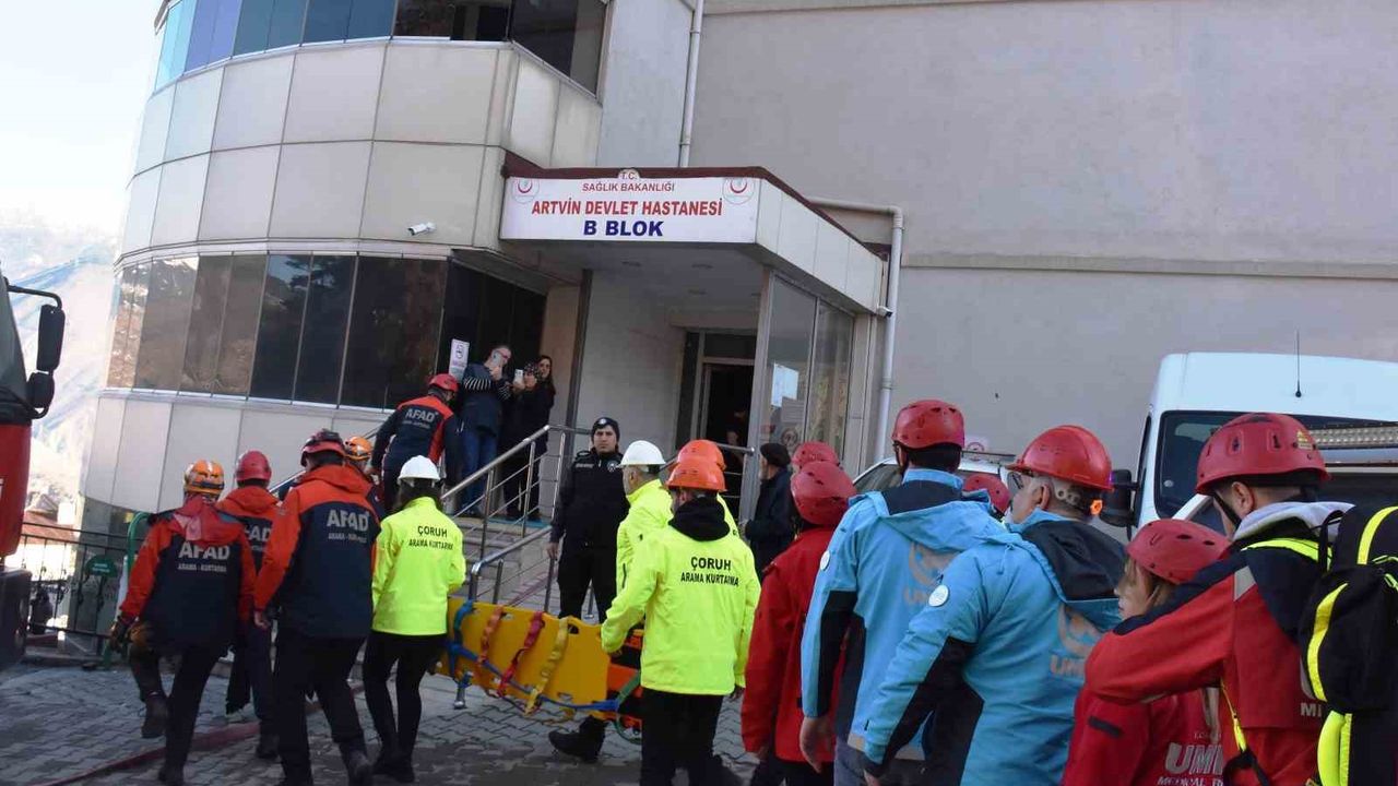 Yaşanabilecek yangın felaketlerine hazırlıklı olmak amacıyla düzenlenen tatbikatta senaryo gereği hastanenin 5. katı çocuk servisinde yangın olduğu 112 Acil Çağrı Merkezine bildirildi. İhbar üzerine itfaiye, sağlık, AFAD, UMKE ve Artvin Çoruh Arama Kurtarma (ÇAK) ekipleri olay yerine sevk edildi. Hasta odasında bulunan mini buzdolabından çıktığı anlaşılan yangına İtfaiye ekipleri müdahale ederken, AFAD, UMKE ve ÇAK ekipleri de dumandan etkilenen 3 hastaya ilk müdahale ardından binadan tahliye etti. Tahliye edilen hastalar ambulanslarla çevre hastanelere sevk edildi.
