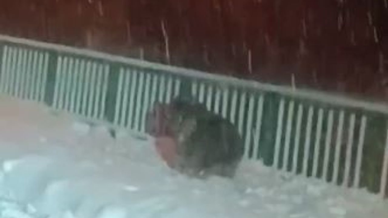 Orta Mahalle ile Yeni Mahalle arasındaki çevre yolunda iş makinesiyle kar küreme çalışması yapan Özgen Uçar, kaldırımda yürüyen ayıları fark etti. Aracın sesinden ürken yavru ayılardan ikisi bariyerlerden atlayarak hızla gözden kaybolurken, diğer iki ayı bir süre kaldırımda koştuktan sonra bariyerlerden atlayarak gecenin karanlığında ortadan kayboldu.