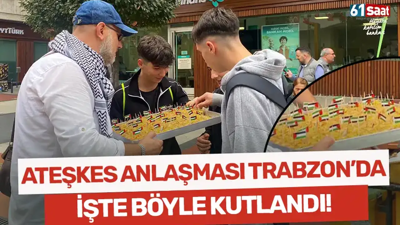 “Gazze” hassasiyeti güden ülkelerde bu ateşkes anlaşması coşkuyla karşılandı. Trabzon’da ise Trabzon Kudüs Kardeşlik Derneği tarafından Kahramanmaraş Caddesi’nde gerçekleştirilen sevinç gösterisi ise dikkat çekti.